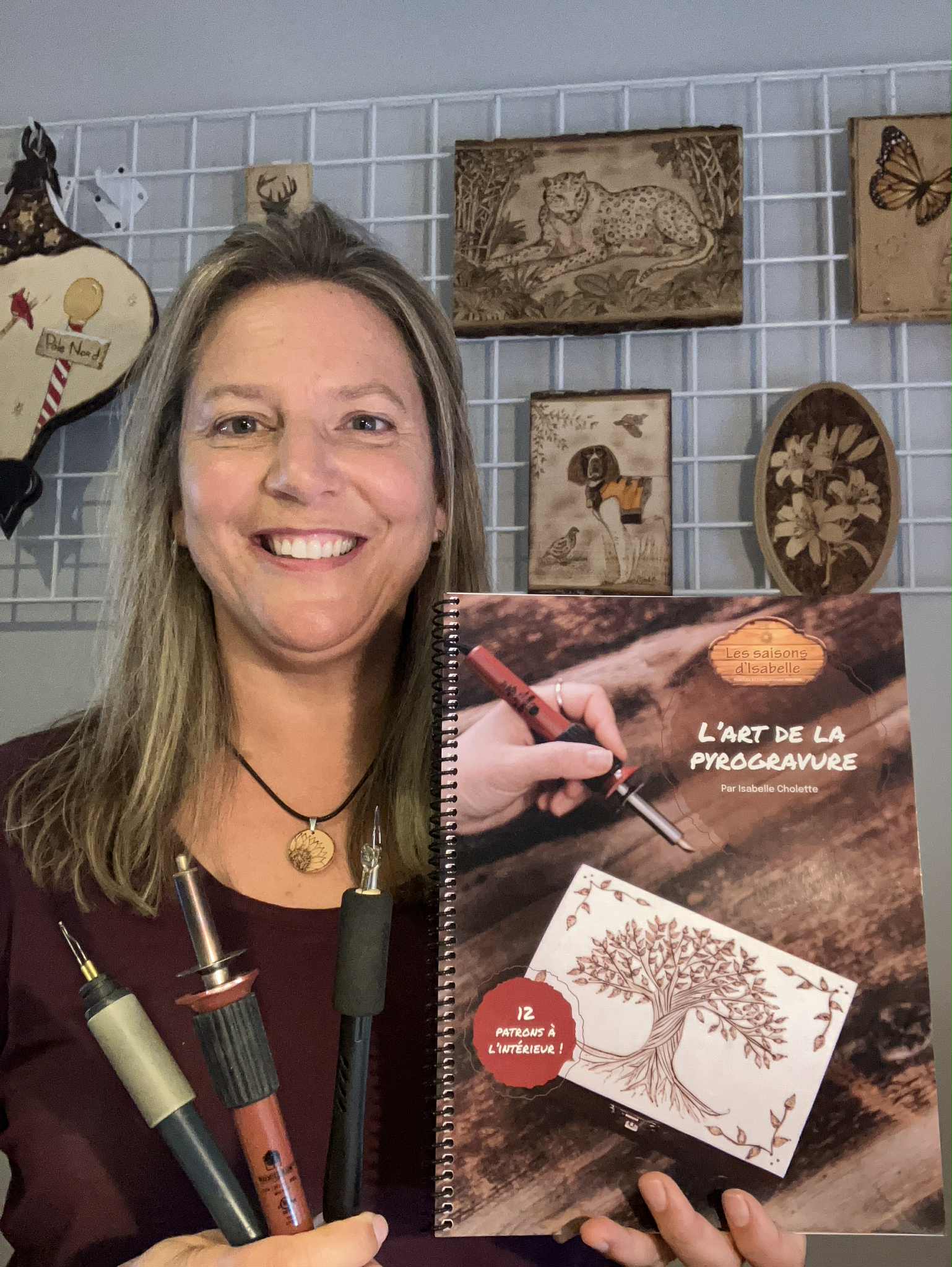 Intervenante sociale de formation, Isabelle croit fermement au pouvoir de l’art pour apporter la sérénité et nourrir l’imagination. Aujourd’hui, elle partage sa passion à travers ses créations, son recueil sur la pyrogravure, ainsi que ses ateliers créatifs, accessibles à tous.