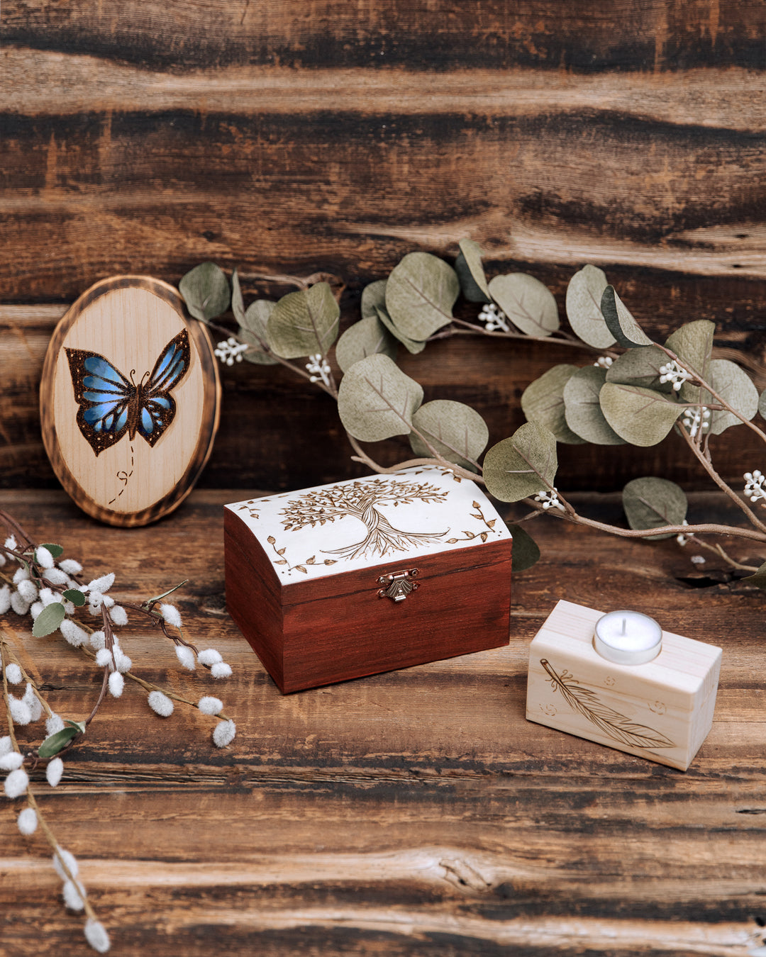 Artiste en pyrogravure au Québec, Isabelle crée des œuvres uniques inspirées par la beauté de la nature. En mariant bois revalorisé, pyrogravure et aquarelle, elle propose des pièces personnalisées qui ajouteront un cachet champêtre à votre décor.