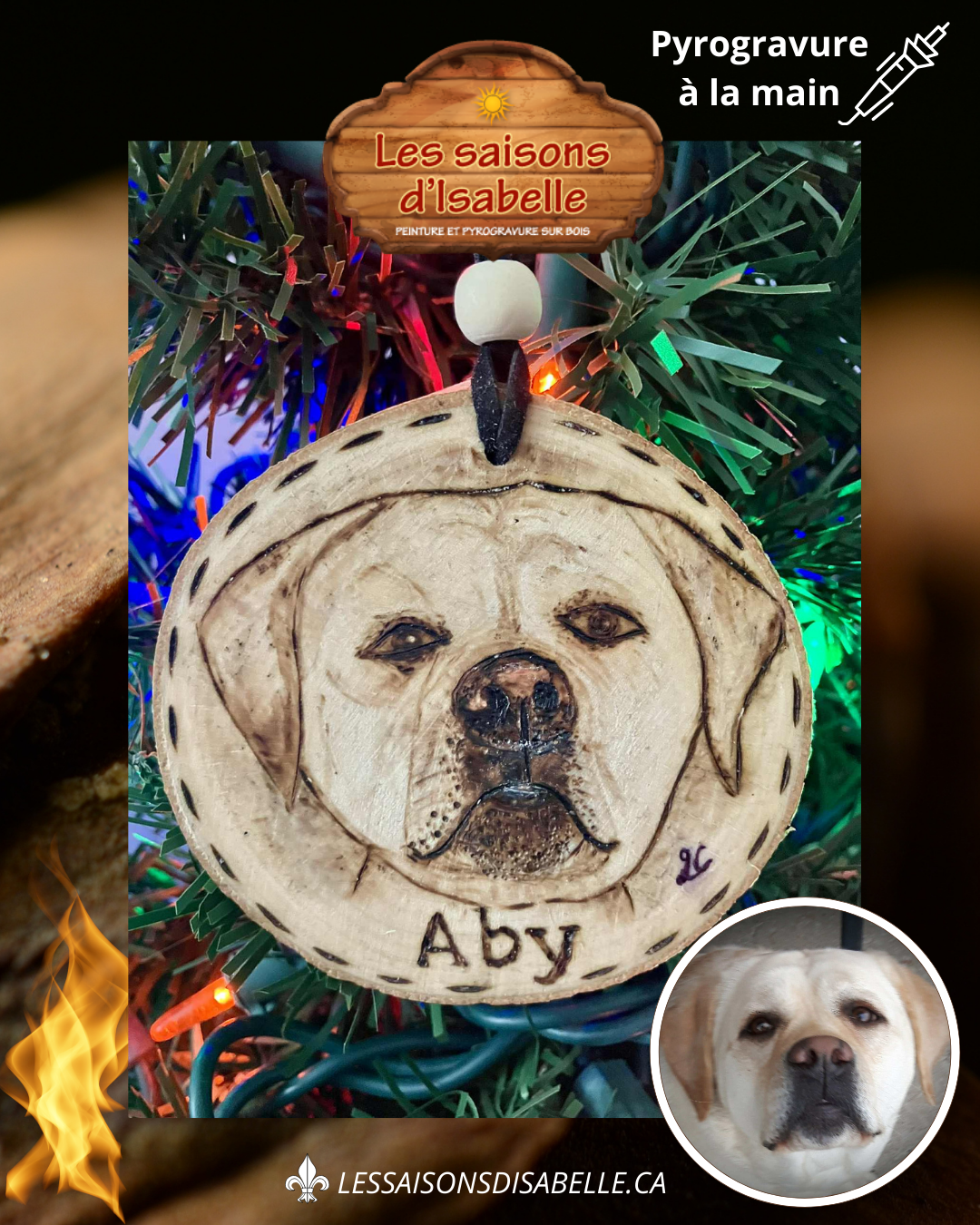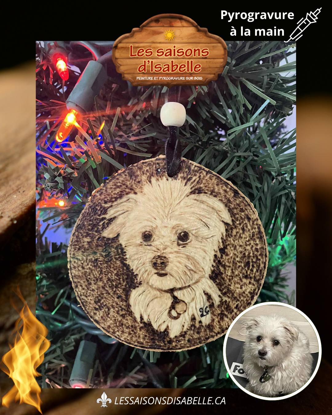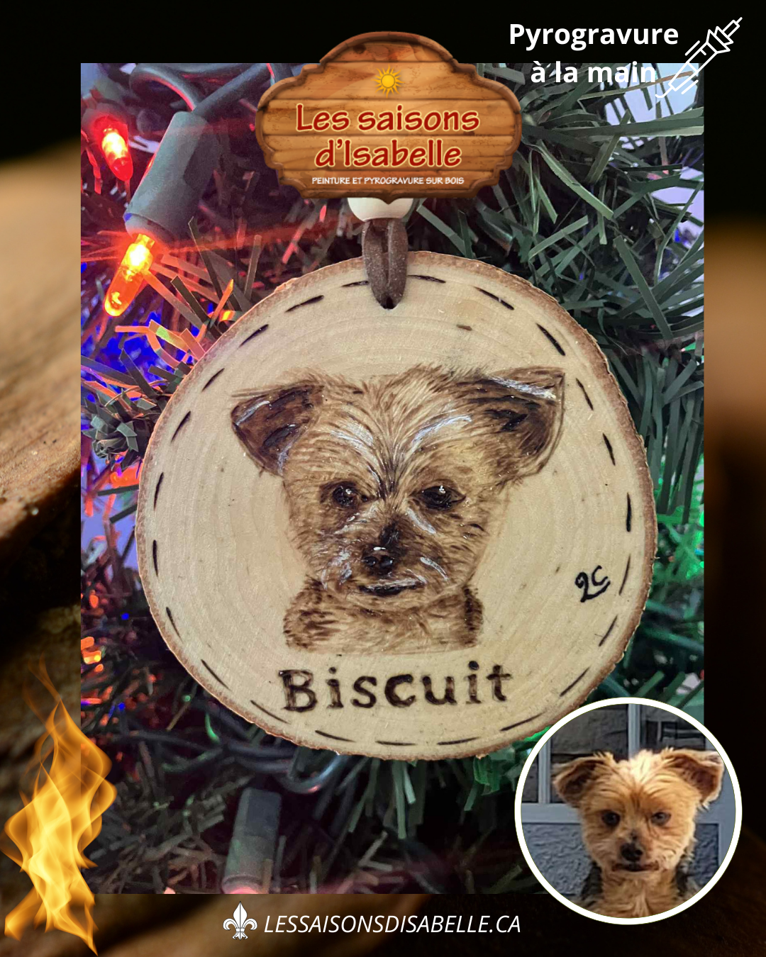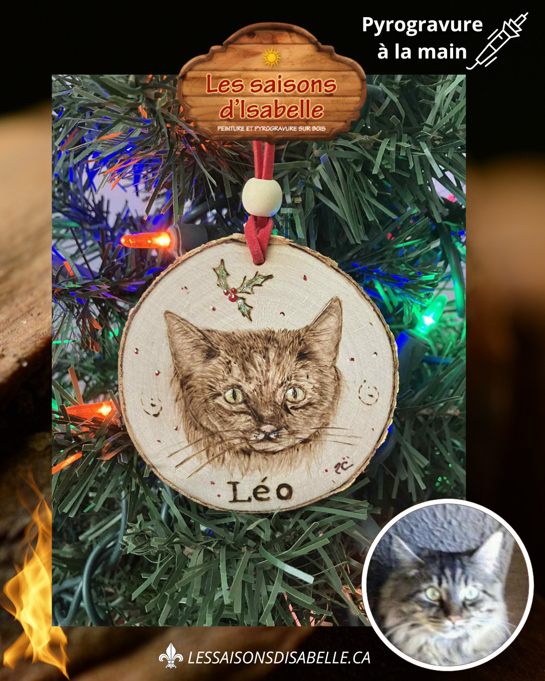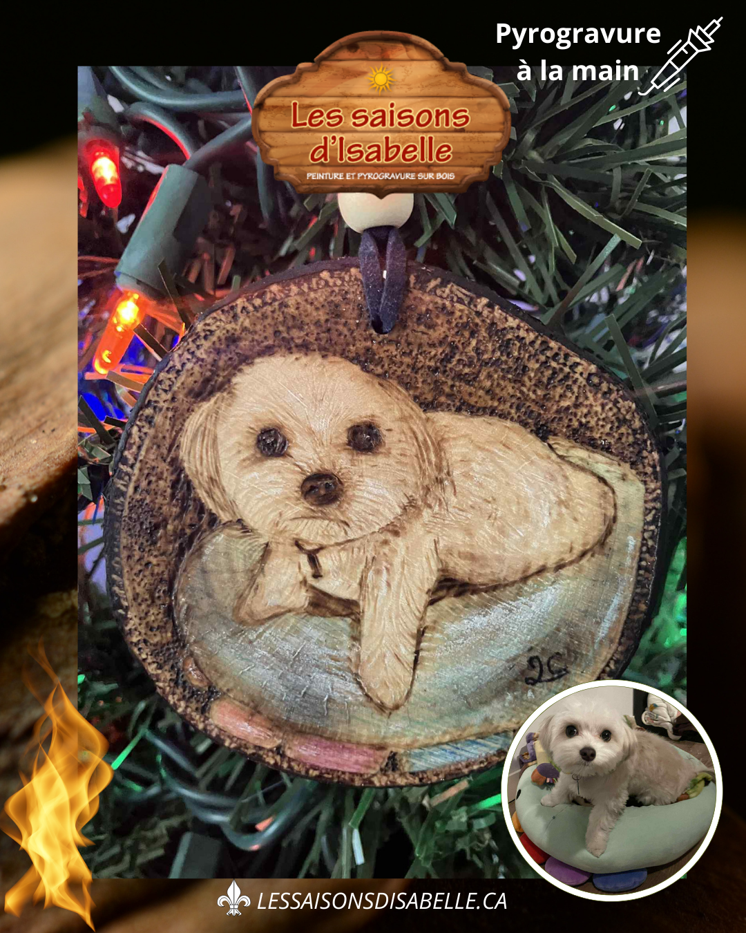 Confection écoresponsable: rondin de bouleau, pyrogravure à la main, cire protectrice à base minérale.