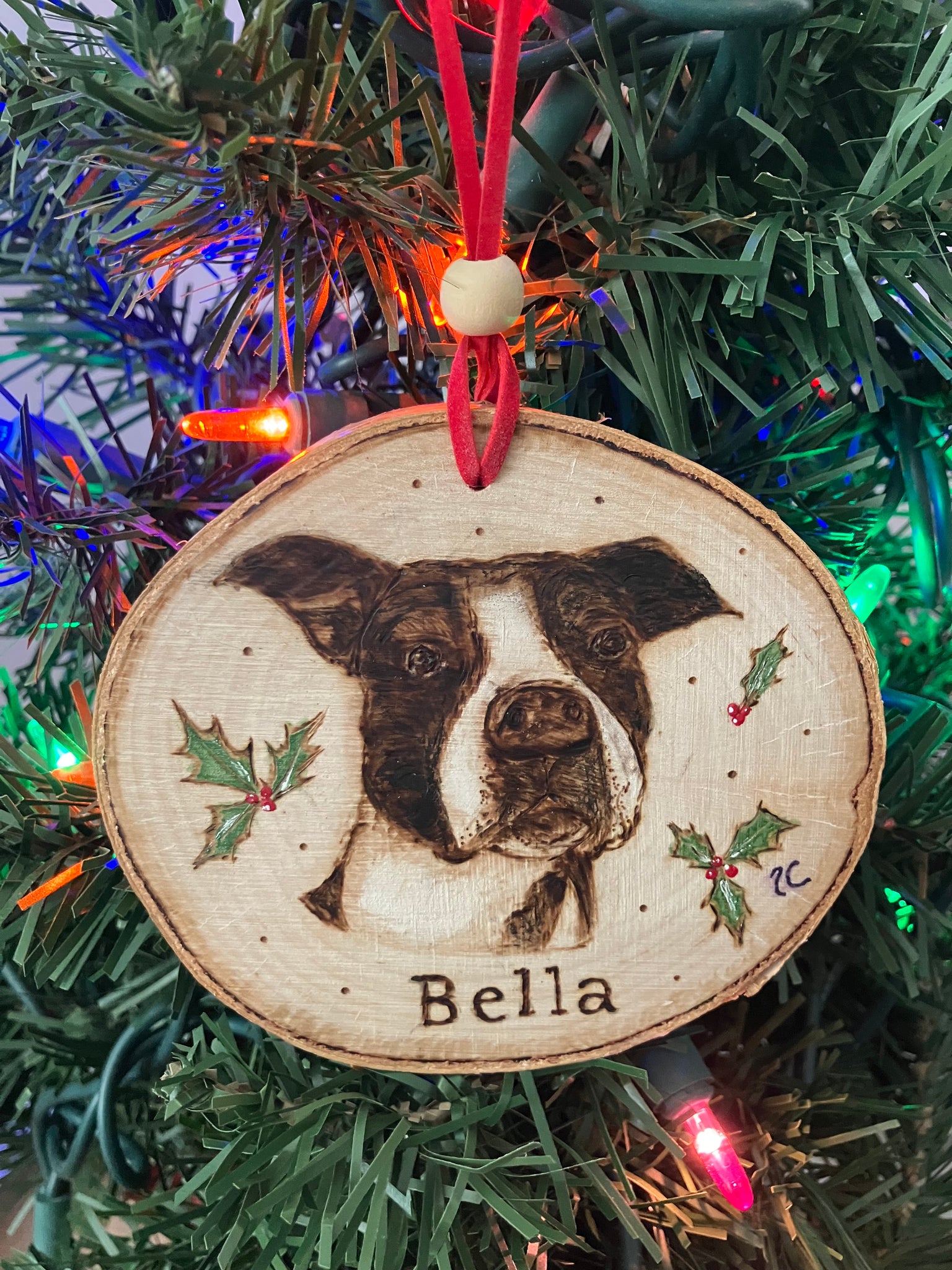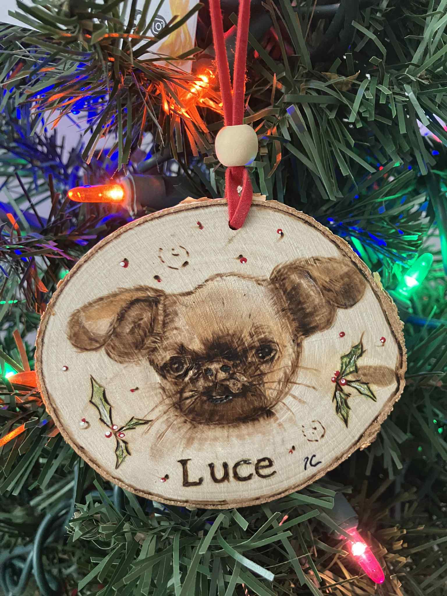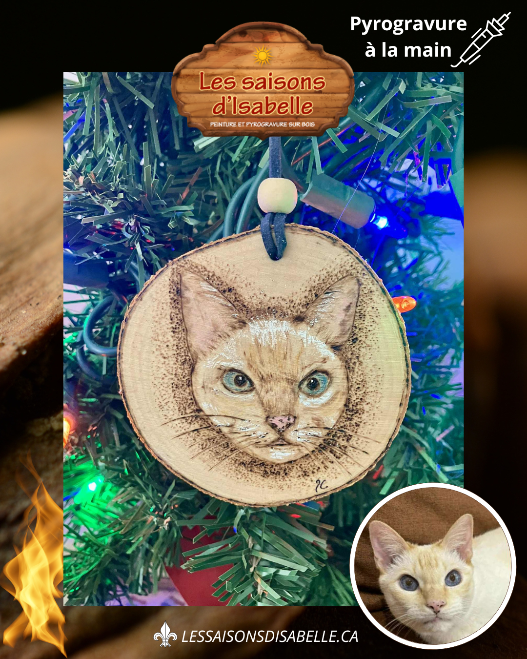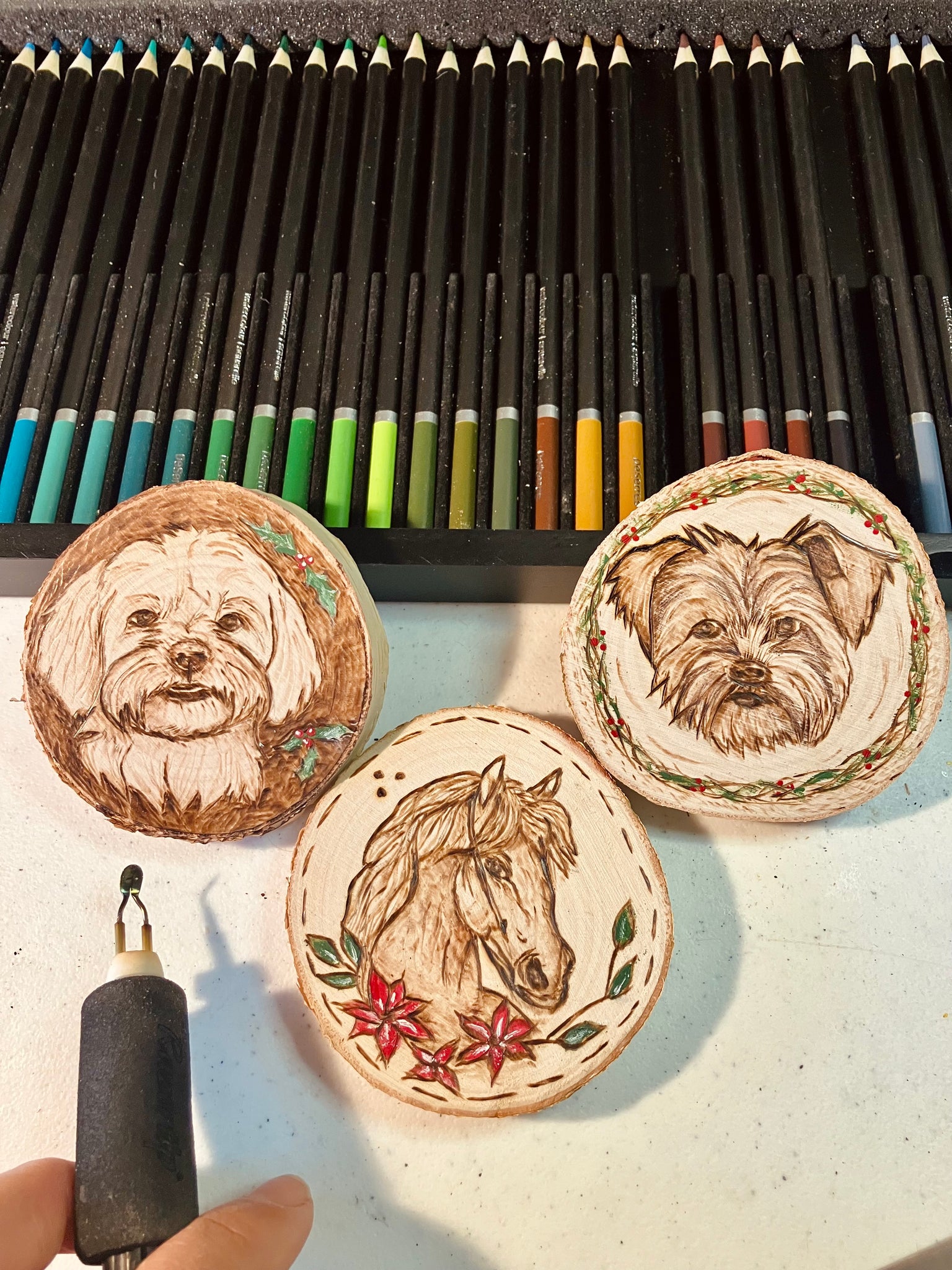 Confection écoresponsable: rondin de bouleau, pyrogravure à la main, cire protectrice à base minérale.