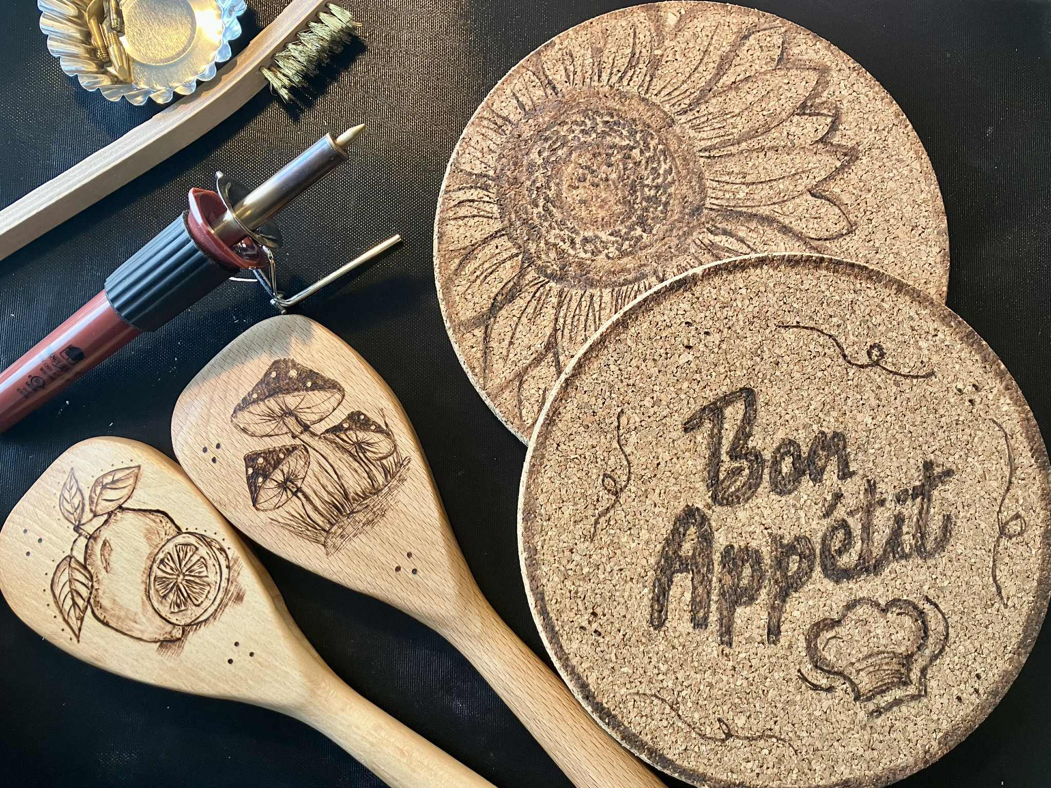 Prêt de pyrograveurs par Les saisons d’Isabelle (poste complet fourni).